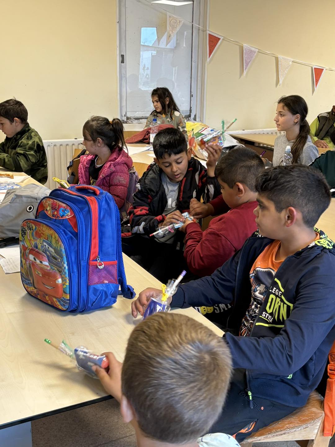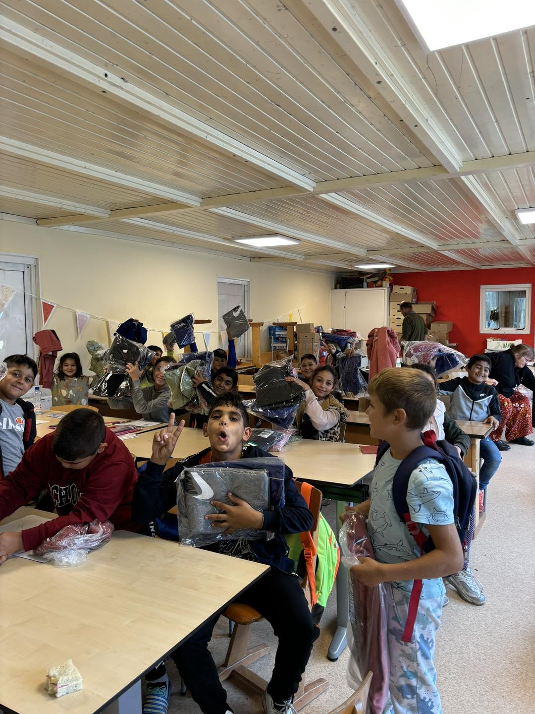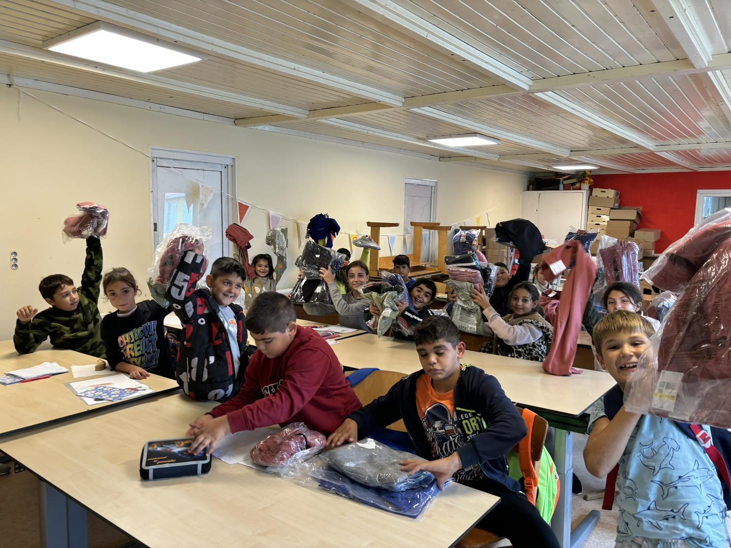 De Nederlandse groep jongeren uit Broek op Langedijk hadden school tassen gekocht voor de kinderen en van de evangelische gemeente uit Maarssen hadden geld gekregen om de tassen weer te vullen met school materialen.