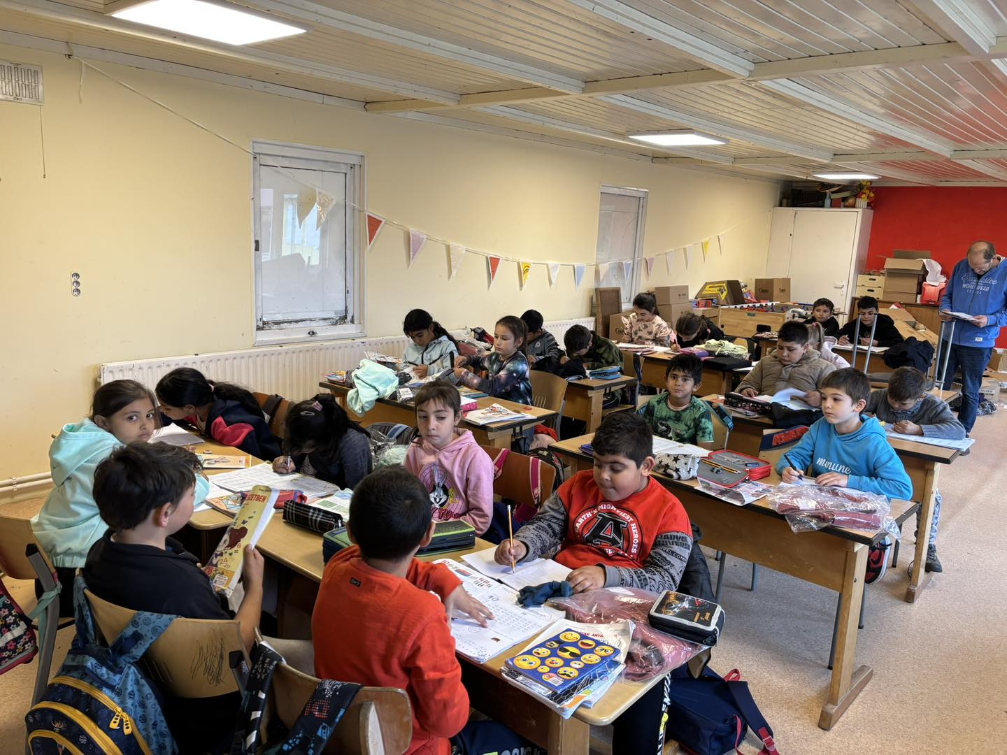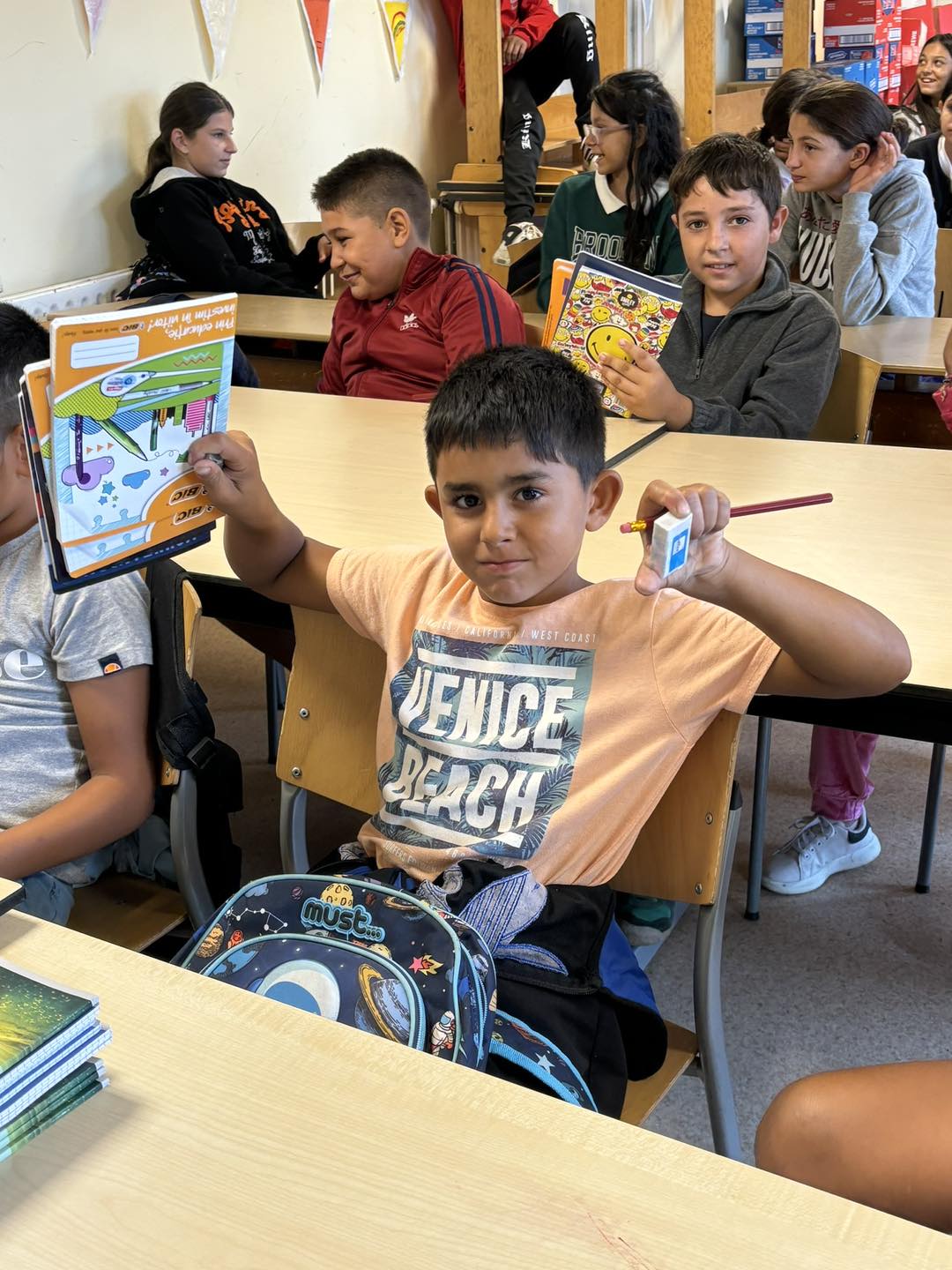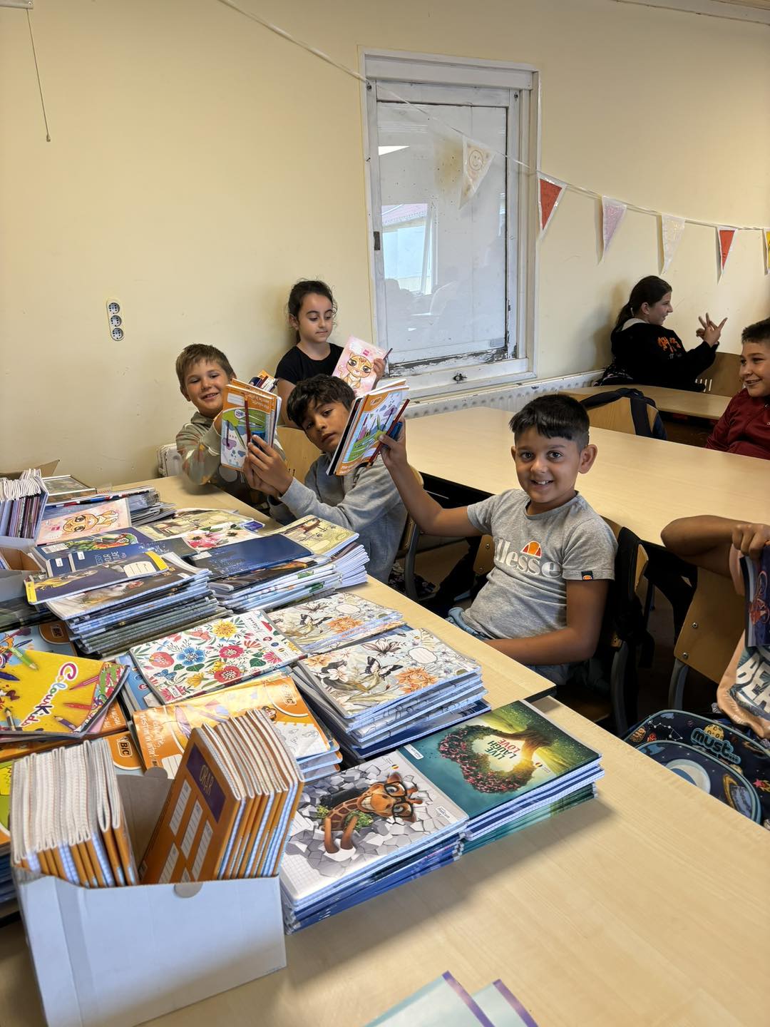 De Nederlandse groep jongeren uit Broek op Langedijk hadden school tassen gekocht voor de kinderen en van de evangelische gemeente uit Maarssen hadden geld gekregen om de tassen weer te vullen met school materialen.